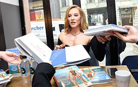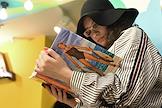 Презентация книги рецептов "Здорово едим. Попробуй счастье на вкус" Наташи Давыдовой в магазине "Город сад". Читательница во время презентации.