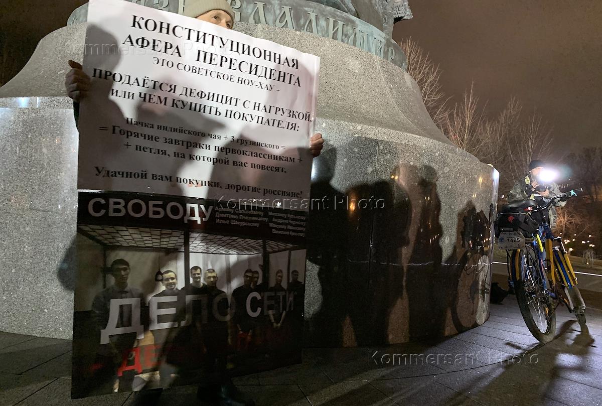 Одиночные пикеты против конституционных поправок, позволяющих обнулить президентские сроки, прошли у памятника князю Владимиру.