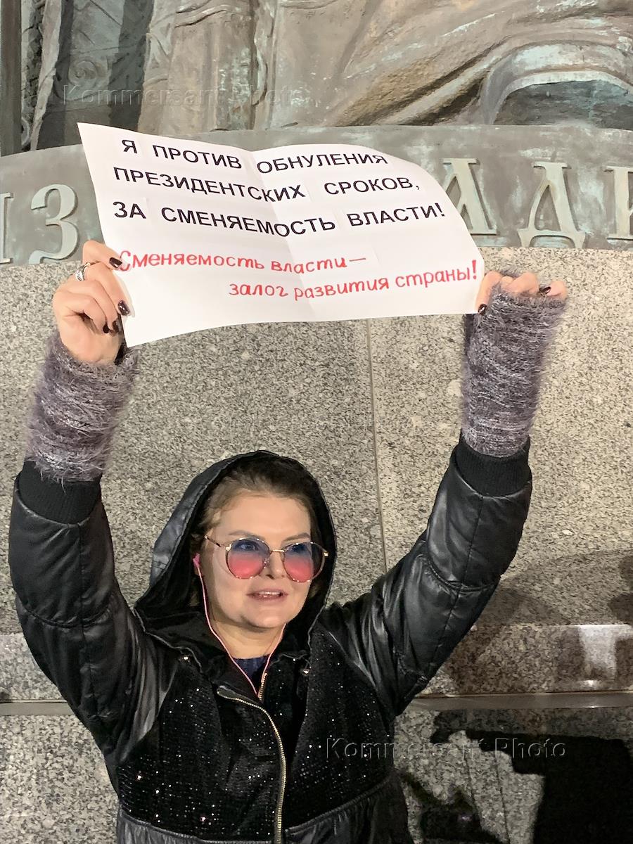 Одиночные пикеты против конституционных поправок, позволяющих обнулить президентские сроки, прошли у памятника князю Владимиру.