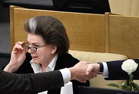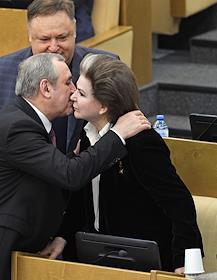 Пленарное заседание Государственной думы (ГД) России. Слева направо: член Комитета ГД России по бюджету и налогам Вера Ганзя, первый заместитель председателя комитета ГД России по культуре Владимир Бортко и первый заместитель председателя комитета ГД России по труду, социальной политике и делам ветеранов Николай Коломейцев во время заседания.
