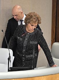 Пленарное заседание Государственной думы (ГД) России. Заместитель председателя комитета ГД России по федеративному устройству и вопросам местного самоуправления Валентина Терешкова во время заседания.