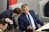 Пленарное заседание Государственной думы (ГД) России. Слева направо: первый заместитель председателя ГД России Александр Жуков, заместитель председателя ГД России Алексей Гордеев и председатель ГД России Вячеслав Володин во время заседания.