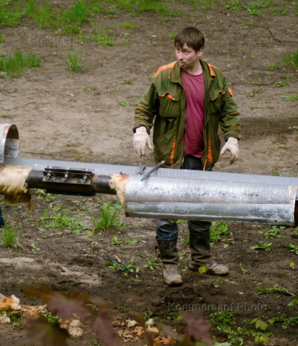 Жанровая фотография. Сотрудник жилищно-коммунального хозяйства во время устранения аварии на трубах горячего водоснабжения.
