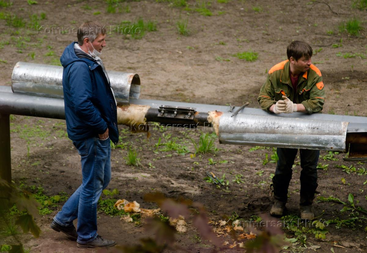 Жанровая фотография. Сотрудники жилижно-коммунального хозяйства во время устранения аварии на трубах горячего водоснабжения.