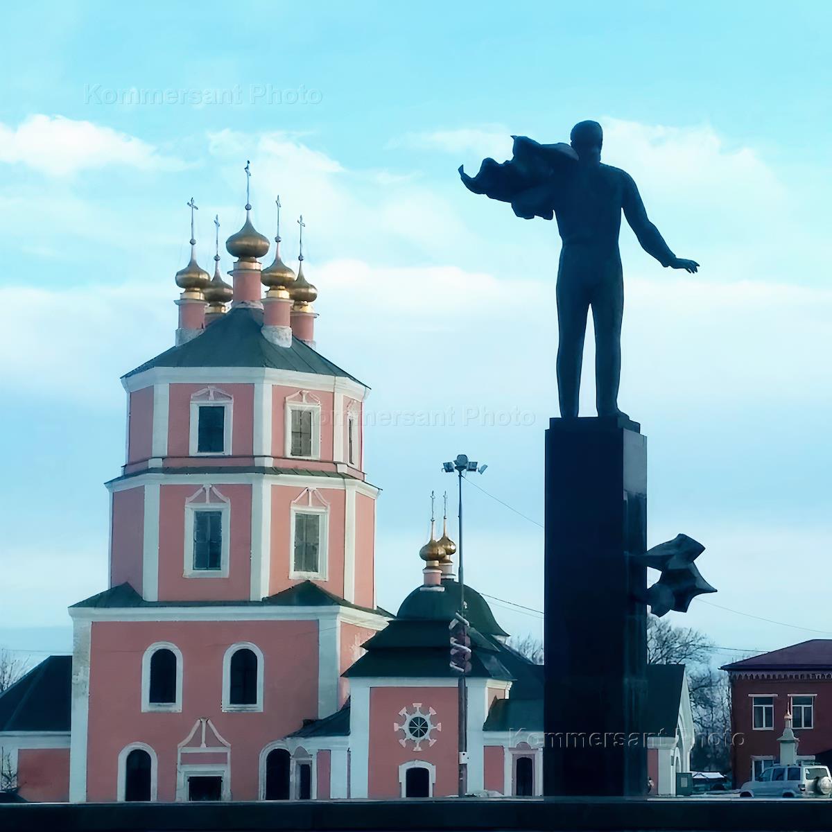 Виды города Гагарин. Памятник космонавту Юрию Гагарину на главной площади города.