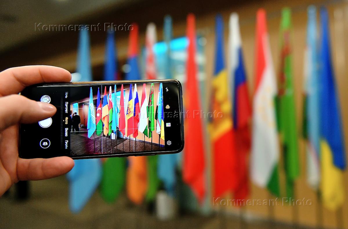 Международный экономический форум государств-участников СНГ прошел в Центре международной торговли (ЦМТ). Флаги государств-участников.