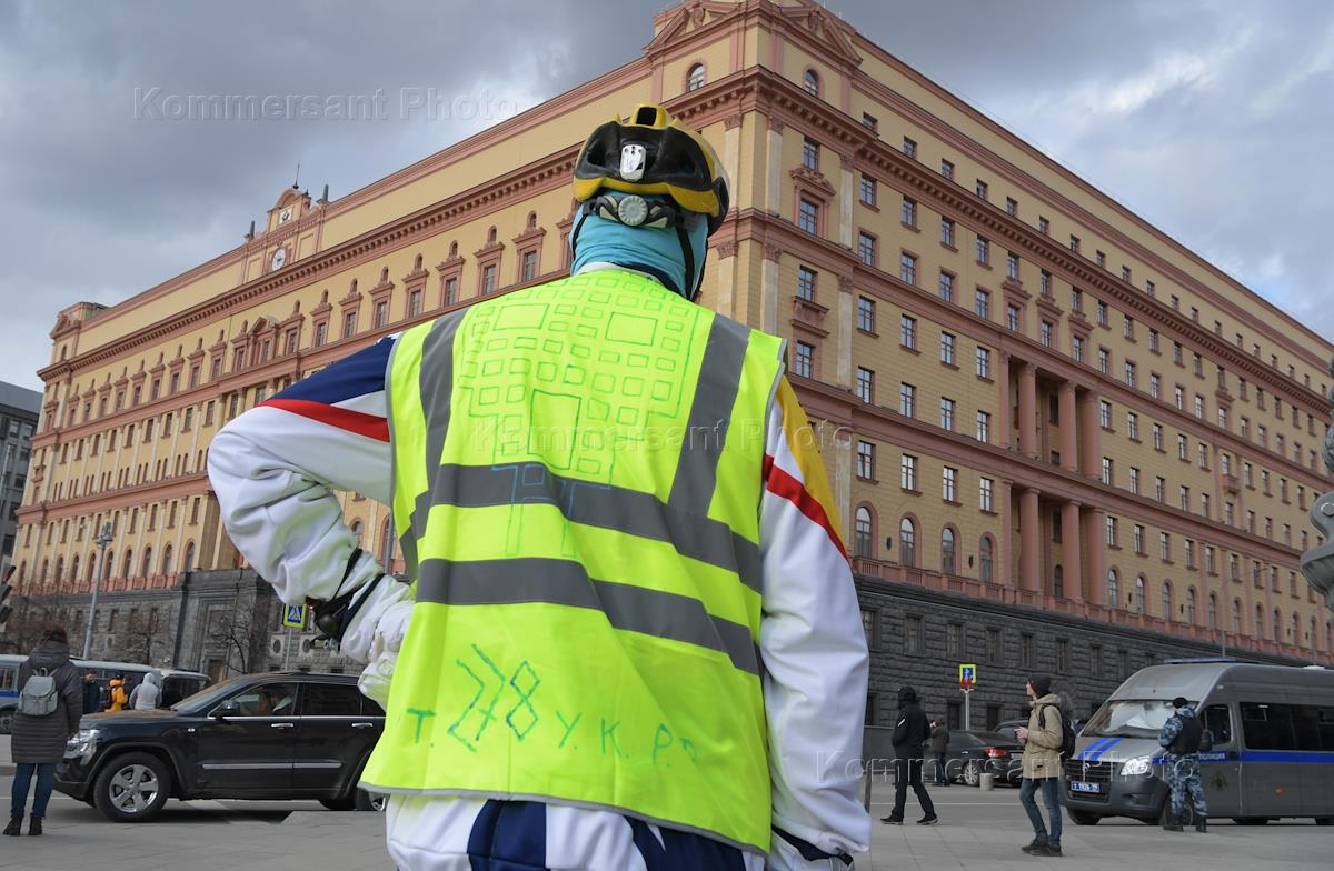 Участник серии одиночных пикетов "Обнулите сроки политзекам" на Лубянской площади.