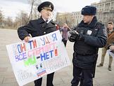 Лидер движения "Левый фронт" Сергей Удальцов (справа) во время одиночных пикетов "Обнулите сроки политзекам" на Лубянской площади.