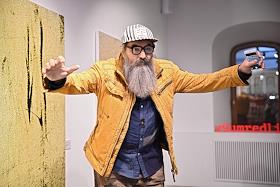 Церемония открытия выставки Семена Файбисовича "Новый Мир" в галерее "ГУМ-Red-Line". Художник Семен Файбисович (справа) на церемонии.