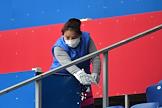Российская Премьер-лига (РПЛ). 22-й тур РПЛ. Матч между командами ЦСКА (Москва) и "Уфа" (Уфа) на стадионе "ВЭБ Арена". Сотрудница стадиона во время профилактической обработки зрительских трибун.