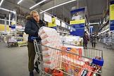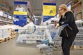 Гипермаркет Metro Cash&Carry. Покупательница с тележкой полной туалетной бумаги.