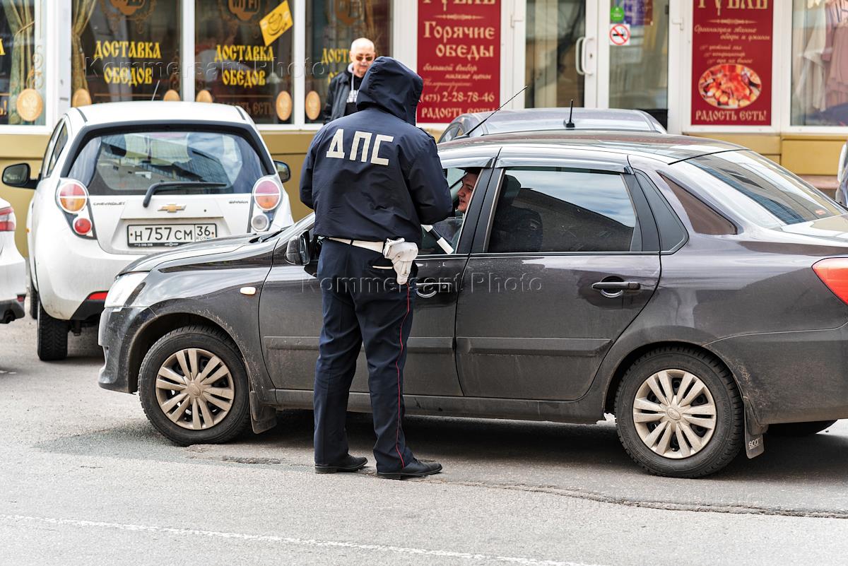 Жанровая фотограффия. Сотрудник дорожно-патрульной службы (ДПС) во время оформления протокола для дальнейшей эвакуации неправильно припаркованного автомобиля.