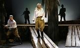Предпремьерный показ спектакля "А зори здесь тихие" по повести Бориса Васильева в постановке Елены Красновой и Виктории Самохиной в Саратовском ТЮЗе имени Киселева. Актер Алексей Карабанов (слева) во время спектакля.
