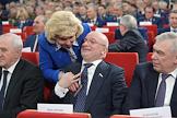 Расширенное заседание коллегии Генеральной прокуратуры России. Представитель в Совете Федерации России от законодательного (представительного) органа государственной власти Калужской области Алексей Александров (слева) и заместитель генерального прокурора России Сергей Зайцев (в центре) перед началом заседания.
