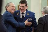 Расширенное заседание коллегии Генеральной прокуратуры России. Председатель комитета Государственной думы России по безопасности и противодействию коррупции Василий Пискарев (слева) и заместитель генерального прокурора России Сергей Зайцев (справа) перед началом заседания.
