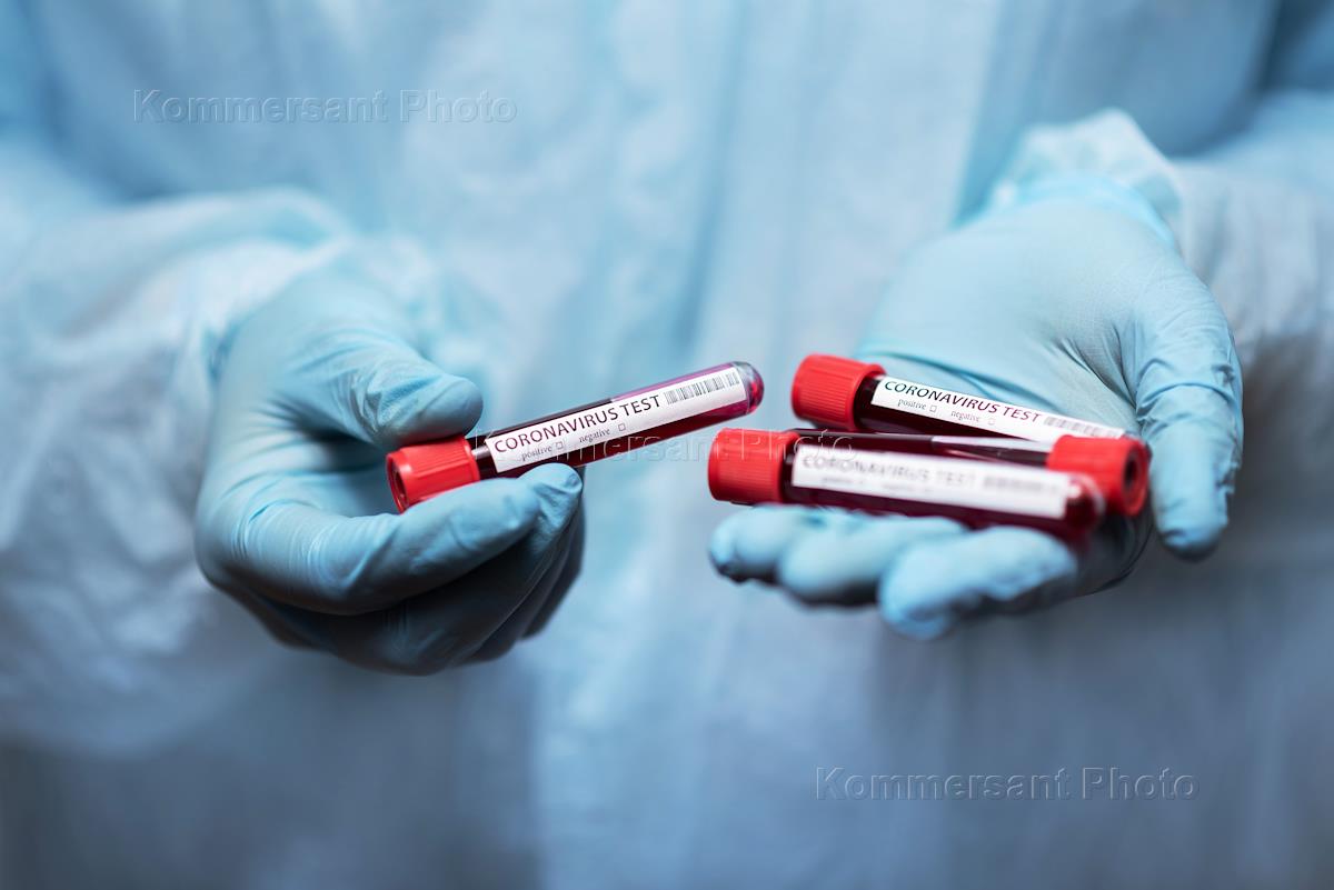 Preventive measures and precautions against coronavirus COVID-19. Genre photo. Coronavirus test tubes in the hands of a medical worker.
