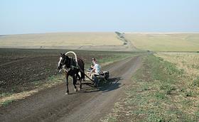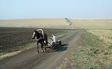 Базарно-Карабулакский район. Люди едут на телеге по проселочной дороге.