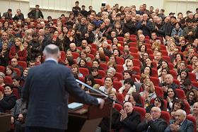 Президентские выборы в Абхазии. Предвыборная агитация кандидатов. Кандидат на должность президента Абхазии Аслан Бжания во время встречи с избирателями.