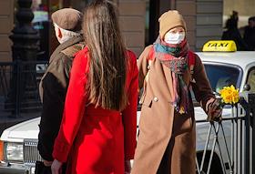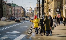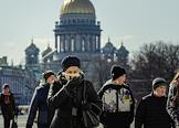 Меры предосторожности против коронавируса COVID-19. Жанровая фотография. Люди в медицинских масках на улицах Санкт-Петербурга.