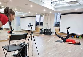 Меры предосторожности против коронавируса COVID-19. Жанровая фотография. Онлайн тренировки, проводимые инструктором спорт-клуба WorldClass во время эпидемии коронавируса.