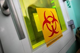 "Центр гигиены и эпидемиологии в Свердловской области" в Екатеринбурге. Бокс для передачи биологических образцов в лабораторию. Знак "Биологическая опасность".