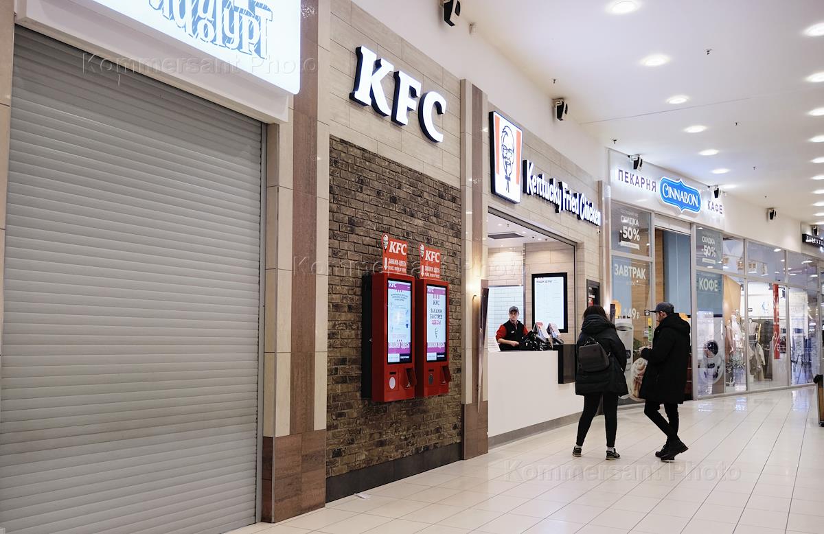 Coronavirus COVID-19 Quarantine. Genre photo. Grand Canyon Mall. Closed cafes in the shopping arcade of the mall.