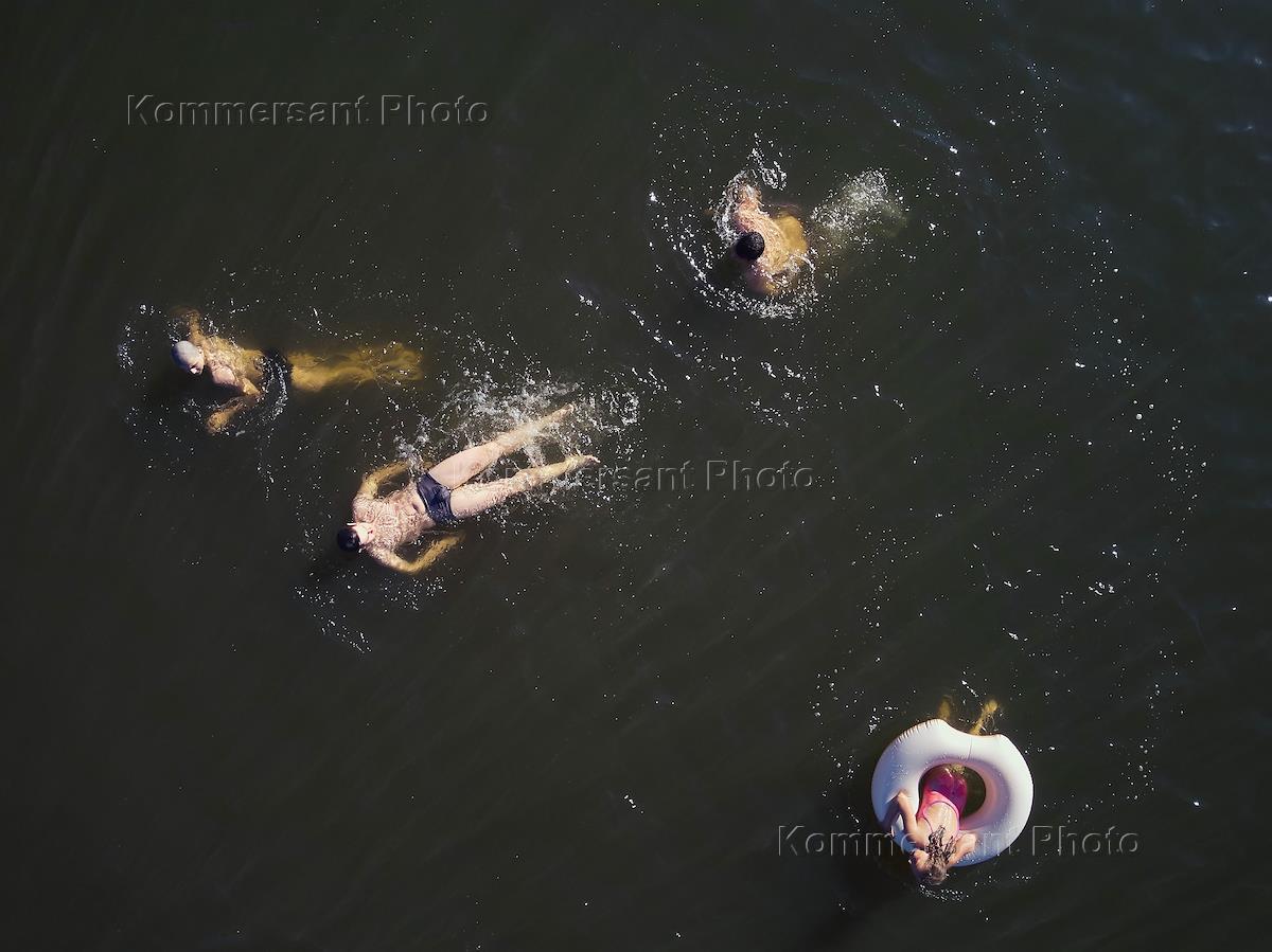 Жанровая фотография. Лето в Выборгском районе. Люди купаются в водоеме.