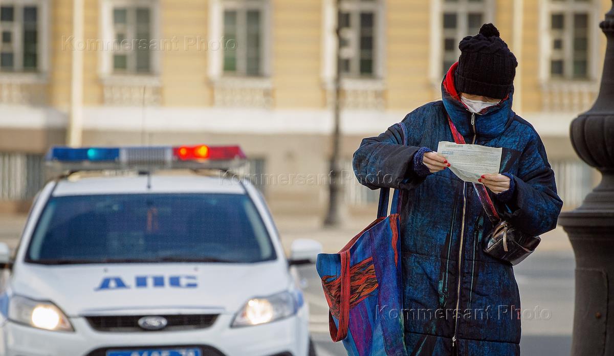 Preventive measures and precautions against coronavirus COVID-19. Genre photo. Woman wearing face mask on the street of St. Petersburg.