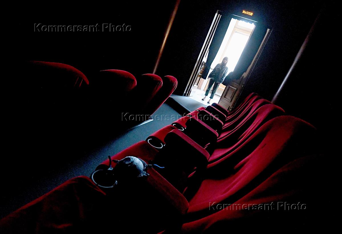 Preventive measures and precautions against coronavirus COVID-19. Genre photo. Closed Pioneer Cinema. Rows of empty seats in the cinema hall.