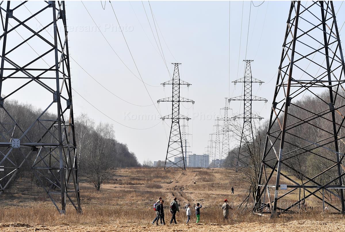 Меры предосторожности и профилактики против коронавируса COVID-19. Жанровая фотография. отдыхающие на просеке под линией электропередачи в районе Гольяновского парка.