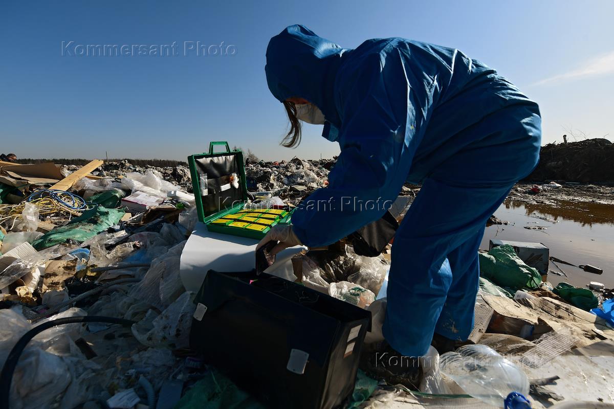 Export of class II, III and IV hazardous waste from an unauthorized dump on Kolkhoznaya Street in the village of Staraya, Vsevolozhsk District. Employee of the Civil Protection Department of the Leningrad Region is seen during the disposal of hazardous waste and garbage.