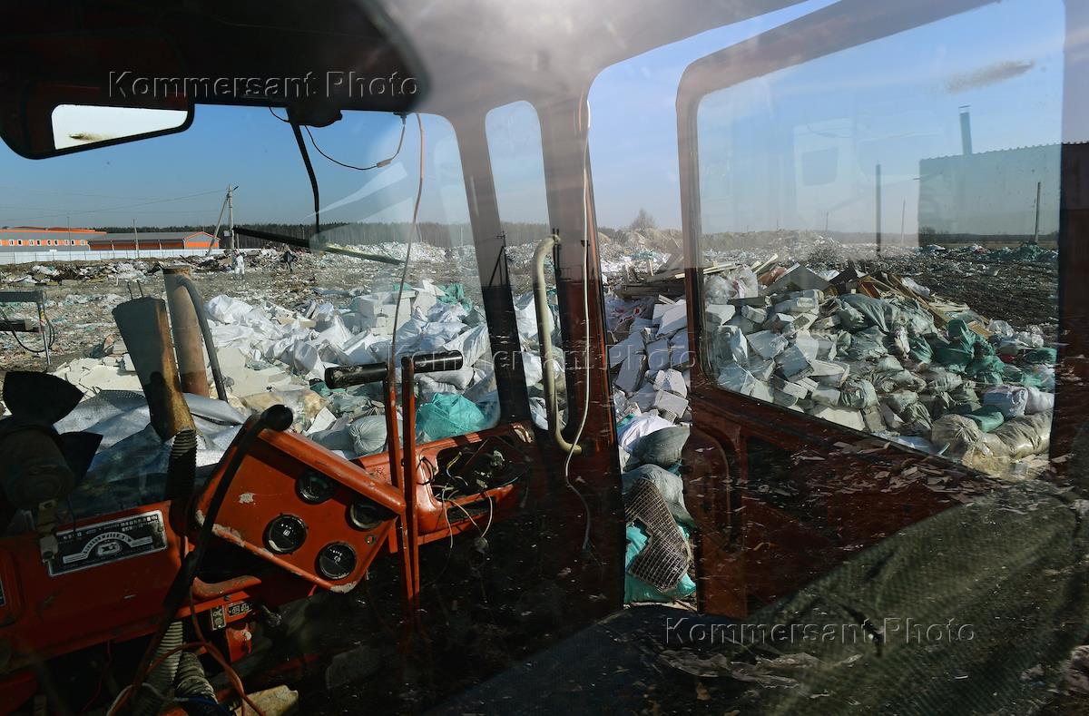 Сотрудники компании ГУП "Экострой" во время работ по утилизации опасных отходов и мусора на несанкционированной свалке во Всеволожском районе Ленинградской области.