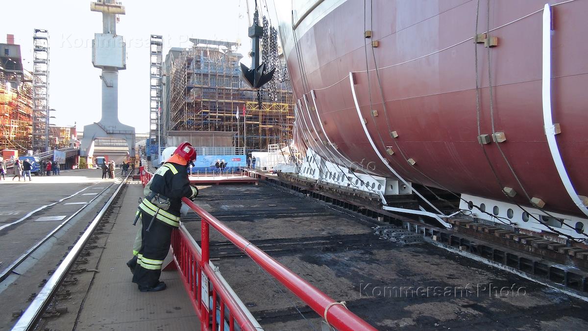 Launch ceremony of the project CP-192 large refrigerator trawler "Captain Vdovichenko" for OOO Russian Fishery Company at the AO Admiralty Shipyard.