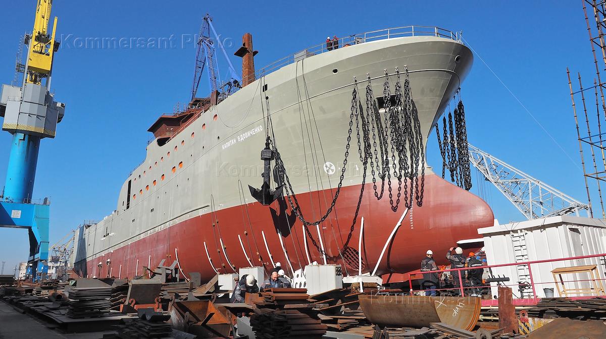 Launch ceremony of the project CP-192 large refrigerator trawler "Captain Vdovichenko" for OOO Russian Fishery Company at the AO Admiralty Shipyard.