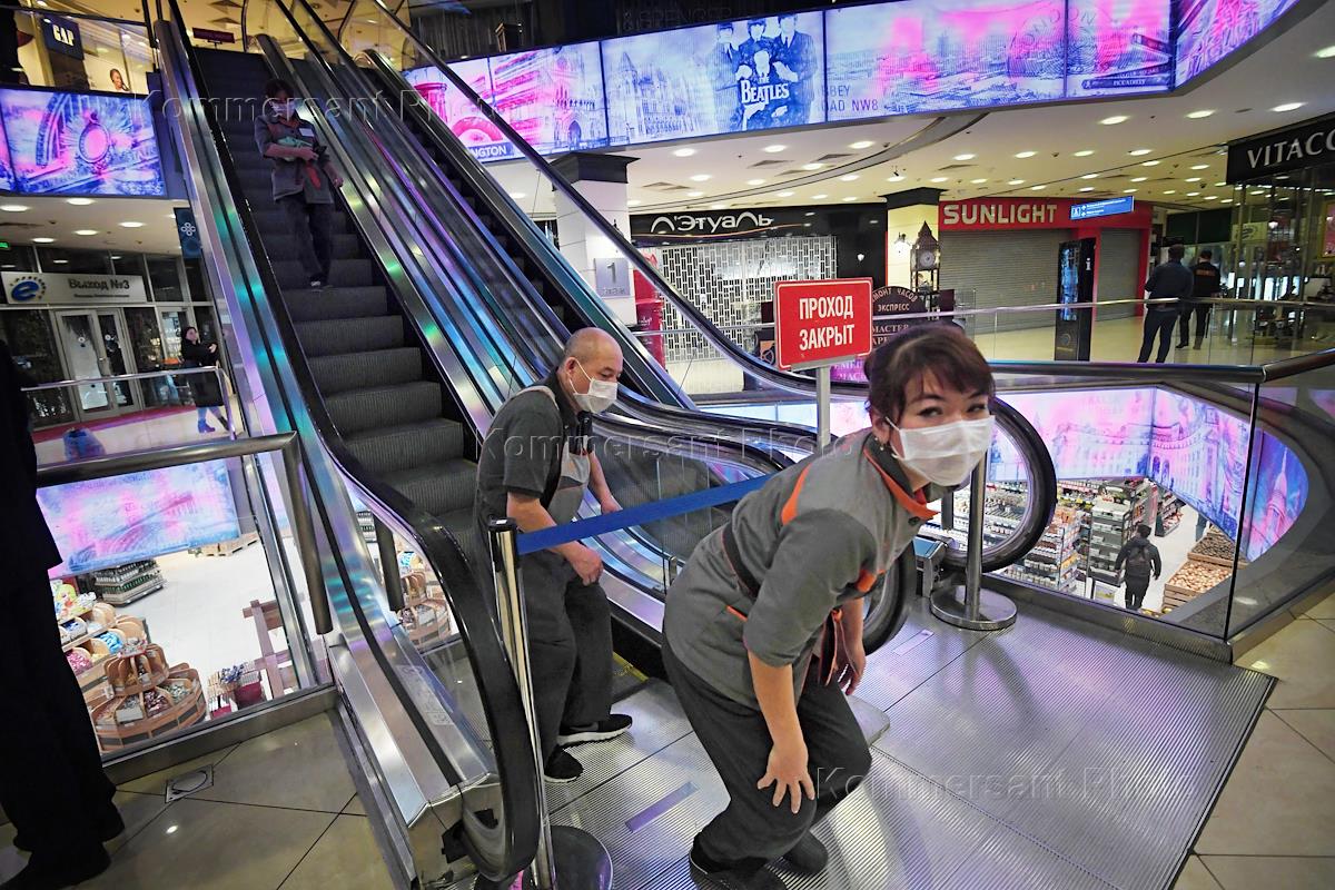 Preventive measures and precautions against coronavirus COVID-19. Genre photo. Mall closed for the public.