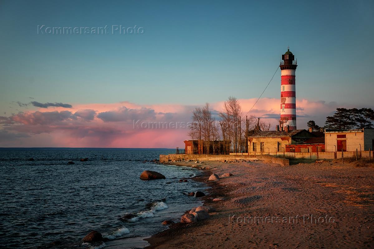 Жанровая фотография. Шепелёвский маяк в Финском заливе во время заката.