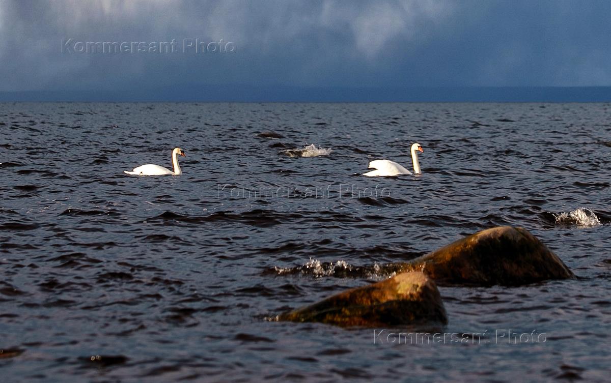 Жанровая фотография. Лебеди в Финском заливе возле Шепелёвского мыса.