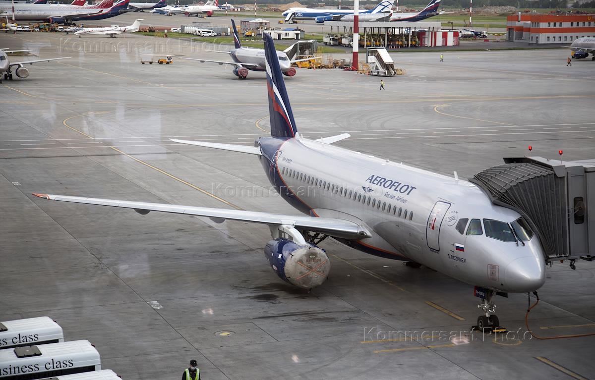 Жанровая фотография. Самолет компании "Аэрофлот" на летном поле.
