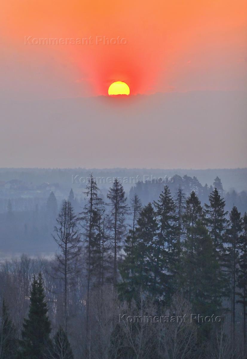 Dmitrov during Coronavirus COVID-19 Quarantine. Genre photo. Sunset.