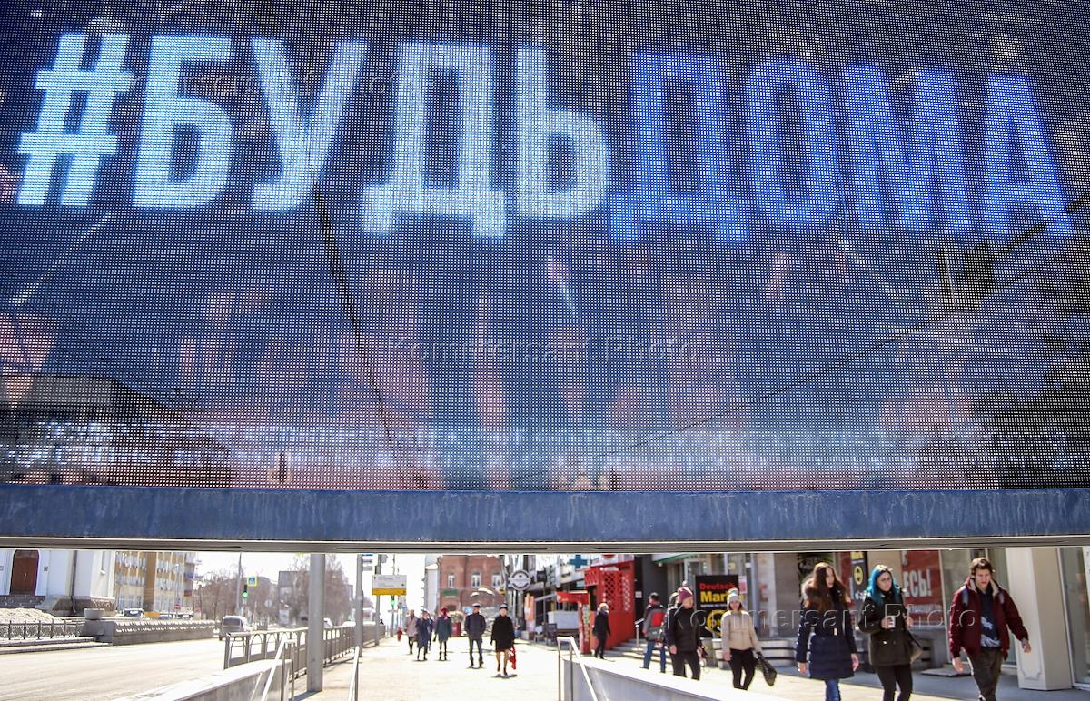 Виды Новосибирска во время карантина из-за опасности распространения коронавирусной инфекции COVID-19. Жанровая фотография. Жанровые фотографии. Агитационный плакат "#побудьдома. Карантин - это важно".