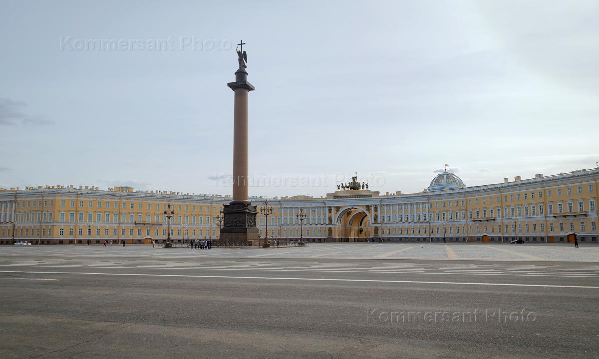 Views of St. Petersburg during Coronavirus COVID-19 Quarantine. Alexander Column on Palace Square.