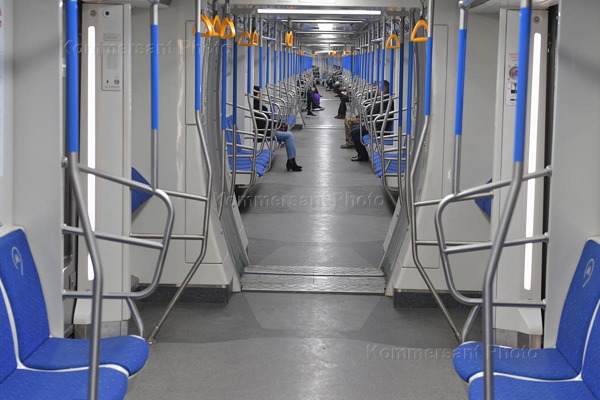 Views of Moscow during Coronavirus COVID-19 Quarantine. Empty metro car.