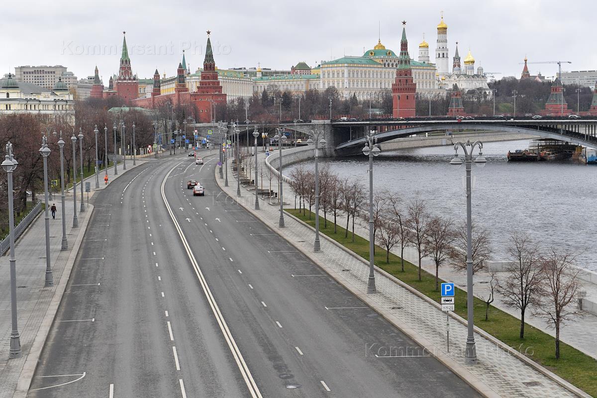 Views of Moscow during Coronavirus COVID-19 Quarantine. Prechistenskaya embankment.