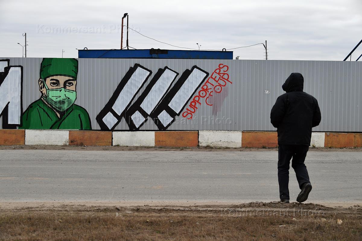 Views of Moscow during Coronavirus COVID-19 Quarantine. Graffiti depicting doctor wearing face mask.