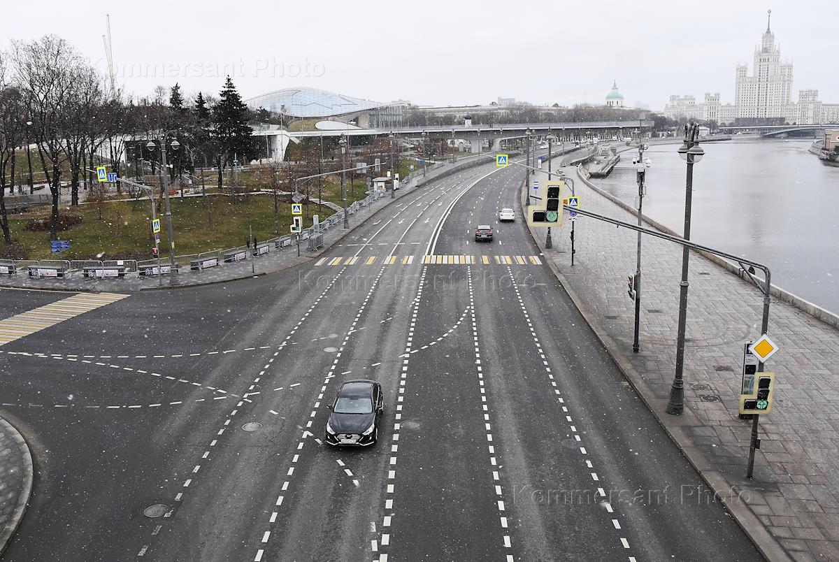 Виды Москвы во время карантина из-за опасности распространения коронавирусной инфекции COVID-19. Москворецкая набережная без автомобилей.