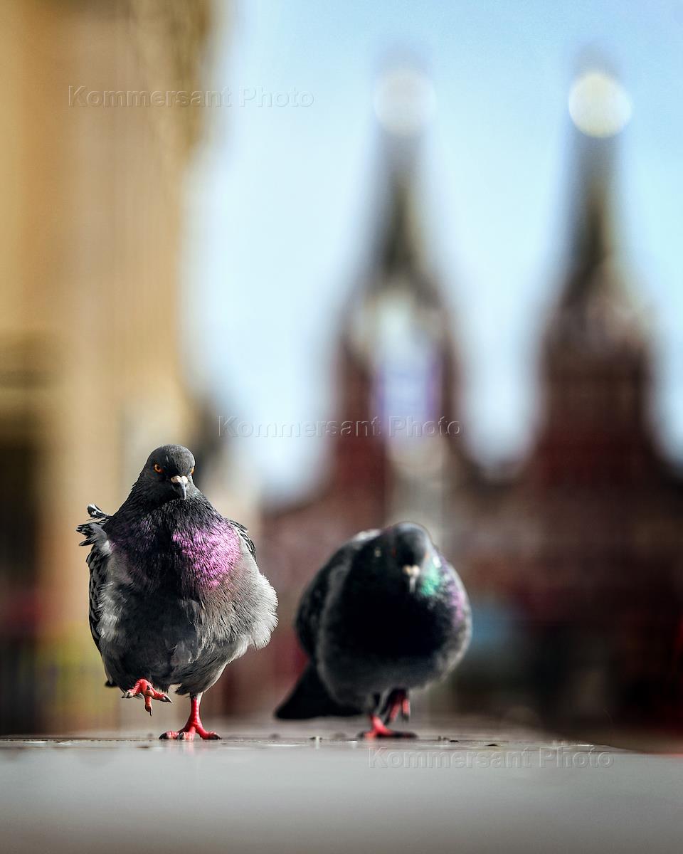 Views of Moscow during during Coronavirus COVID-19 Quarantine. Genre photo. Cathedral of the Intercession of the Most Holy Theotokos on the Moat (Pokrovsky Cathedral, Cathedral of the Intercession on the moat, St. Basil's Cathedral) on Red Square.