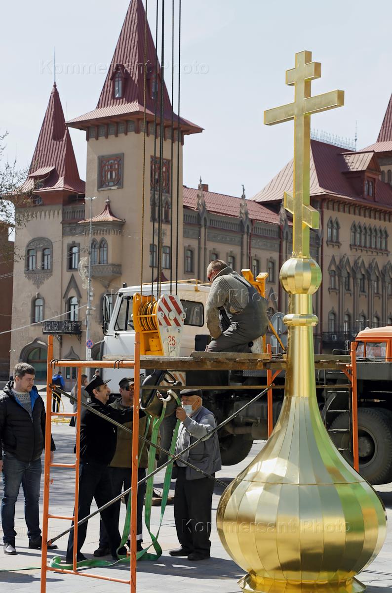 Жанровая фотография. Установка центрального купола храма в честь иконы Божией Матери "Утоли моя печали".
