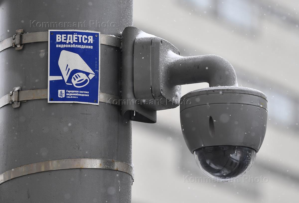 Жанровая фотография. Камера видеонаблюдения на столбе возле здания Правительства города Москвы.