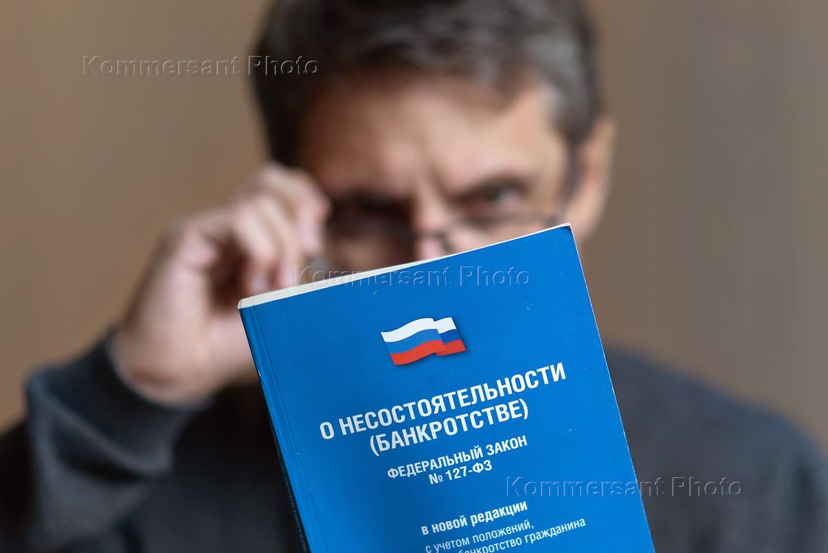 Жанровая съемка. Мужчина читает Закон о несостоятельности (банкротстве).
