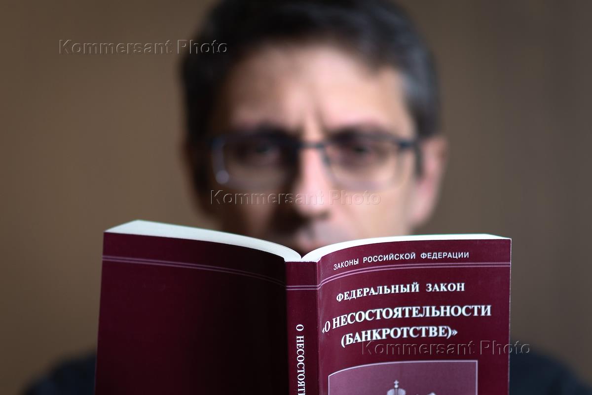 Жанровая съемка. Мужчина читает Закон о несостоятельности (банкротстве).